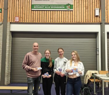 Deze toppers ontvingen tijdens “de week van de scheidsrechter” een klein cadeautje. Zonder jullie geen wedstrijden. Heel erg bedankt names Groesbeeks Glorie. Op de foto Theo Janssen, Niki Arts, Lotte Arts en Lize Weijers. Niet op de foto, maar wel top scheidsrechters bij Groesbeeks Glorie Loes Smits, Christa Kersten, Suus Hoogstraten, John Thoonen en Hans Zwaan